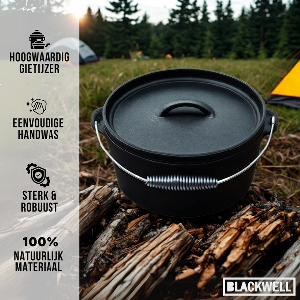 Blackwell Dutch Oven BBQ Set Gusseisen - Bräter + Lifter, Bratpfanne ø 20 cm & Steelpan 18 cm - 4-teilig