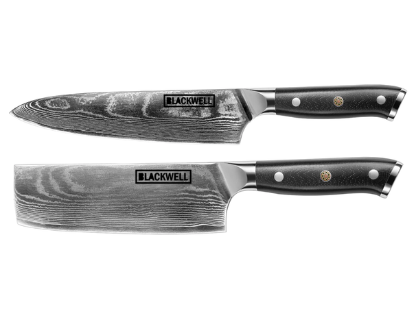 Blackwell Messerset (Kochmesser + Gemüsemesser / Nakiri-Messer) – Japanischer Stil – 67 Lagen Damaszenerstahl – VG10 – 2-teilig
