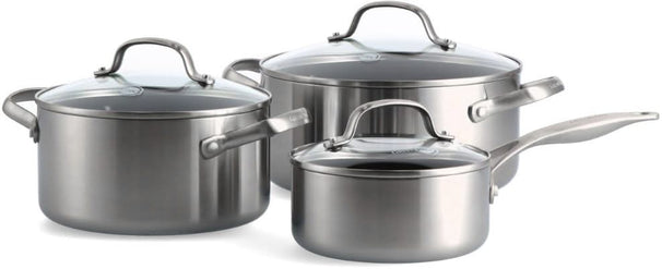 Die GreenPan Geneva-Kollektion kombiniert hochwertigen Edelstahl mit einer langlebigen Keramik-Antihaftbeschichtung. Diese Pfannen bieten eine hervorragende Wärmeleitung und sind ideal für gesundes Kochen ohne Öl oder Butter. Das elegante Finish und die stabilen Griffe sorgen für ein professionelles Aussehen in jeder Küche.