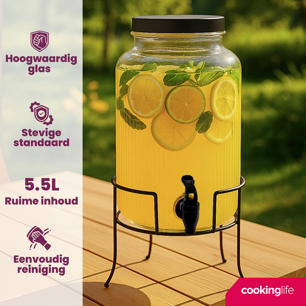 Cookinglife Dubbele Getränkespender - mit Halter - 2 x 4 Liter