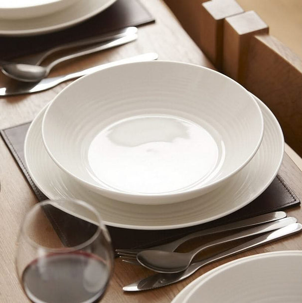 Das Gordon Ramsay Maze Geschirr ist nach seinem erfolgreichen Restaurant Maze im Herzen des Londoner Stadtteils Mayfair benannt. Die Kollektion besteht aus robustem Steinzeug, das die warme Ausstrahlung von Steingut mit der Stärke von Porzellan verbindet. Dieses Material macht das Geschirr mikrowellen- und spülmaschinenfest. Jedes Geschirrteil ist mit einem dezenten Glanz versehen und hat runde Linien. Diese dezenten runden Formen im Geschirr lenken den Blick auf das Wesentliche; das Essen serviert!
