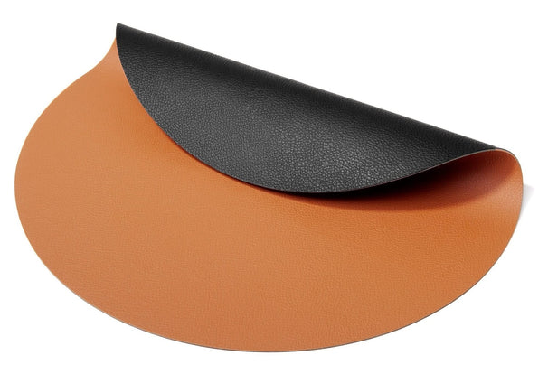 Cookinglife Untersetzer - Veganes Leder - Schwarz / Cognac - doppelseitig - ø 10 cm - 6 Stück