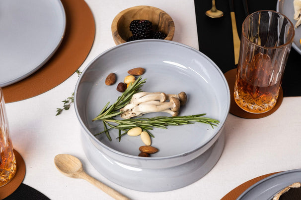 Die hochwertige Keramik sorgt für Langlebigkeit und eine moderne Optik. Die Teller und Schüsseln sind spülmaschinenfest und ideal für den täglichen Gebrauch.