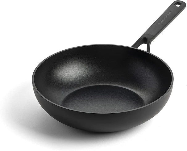 Der KitchenAid-Wok eignet sich perfekt zum Kochen von Gerichten mit viel Gemüse, wie zum Beispiel Pfannengerichten. Die Pfanne hat eine Antihaftbeschichtung und einen breiten Boden, sodass sich das Gemüse leicht umrühren lässt.