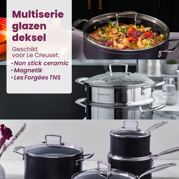 Ein Le Creuset Topfdeckel ist ein hochwertiger Deckel, der Wärme und Feuchtigkeit zuverlässig in der Pfanne oder im Topf hält. Die universellen Modelle von Le Creuset, erhältlich bei Cookinglife, passen auf Töpfe und Pfannen mit einem Durchmesser von 16 bis 32 Zentimetern. Besonders praktisch für alle, die beim Kochen flexibel bleiben möchten, ohne für jede Pfanne einen eigenen Deckel zu benötigen.