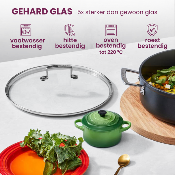 Die Le Creuset Topfdeckel lassen sich vielseitig einsetzen und passen zu zahlreichen Produkten. So eignen sie sich ideal für einen Le Creuset Brater oder eine Le Creuset Bratpfanne. Auch für Spezialgerichte in einer Le Creuset Tajine ist ein universeller Deckel eine clevere Ergänzung.
