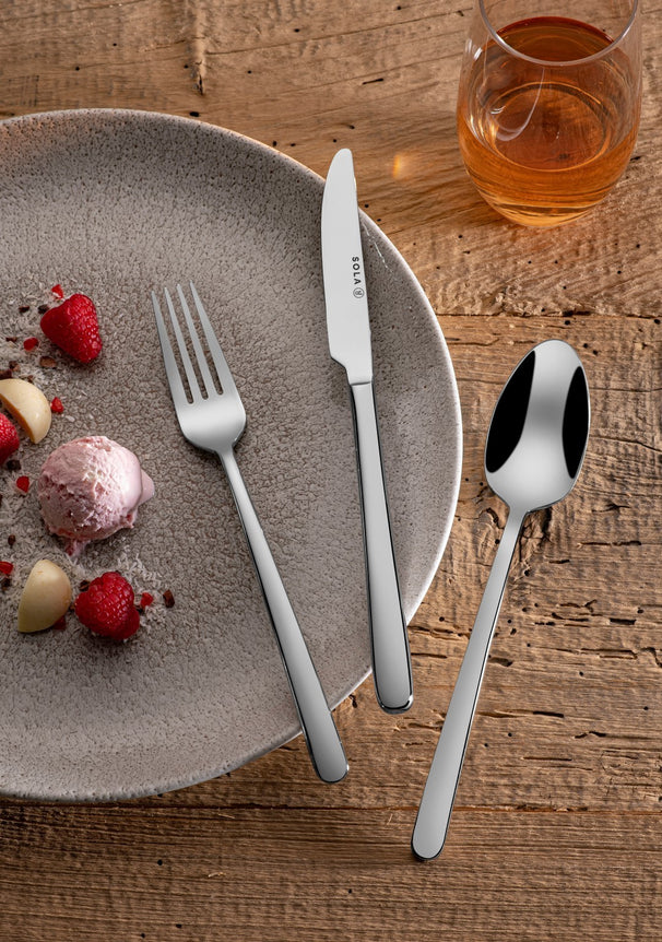 Neben dem schönen Design überzeugt die Sola Donau Kollektion auch durch ihre robuste Qualität. Die Sola Messer schneiden mühelos durch jedes Stück Essen, während die Sola Gabeln und Löffel stabil in der Hand liegen. Die hochwertigen Materialien, die jahrelang halten, ohne ihren Glanz zu verlieren, werden sofort ins Auge fallen.