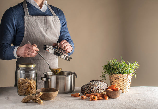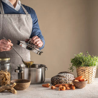 Mit dem Sola Pfannenset Muze erhalten Sie eine Reihe hochwertiger Pfannen! Dieses schöne Set aus Edelstahl besteht aus drei Kochtöpfen und einer Stielkasserolle. Der Boden dieser Pfannen besteht aus drei verschiedenen Schichten, sodass die Hitze innerhalb der Pfannen gleichmäßig verteilt wird und keine Hotspots entstehen. Da die Deckel mit verschiedenen Soft-Grip-Pads ausgestattet sind und die massiven Edelstahlgriffe keine Wärme speichern, ist das Ausgießen der Zutaten sehr einfach.