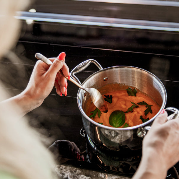 Die TriPly-Technologie von Stahl Cookware sorgt für eine schnelle und gleichmäßige Wärmeverteilung, was zu energieeffizientem Kochen und perfekten Ergebnissen führt. Die Pfannen bestehen aus hochwertigem Edelstahl und sind vollständig PFAS- und PFOA-frei, sodass Sie ohne schädliche Chemikalien bedenkenlos kochen können. Außerdem sind die Griffe so konzipiert, dass sie kühl bleiben, sodass Sie sicher und bequem kochen können. Durch die langlebigen Materialien und die robuste Konstruktion sind die Pfannen für alle Herdarten, einschließlich Induktion, geeignet und gewährleisten eine lange Lebensdauer.