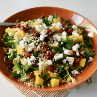 Dieser sommerliche Quinoa-Salat mit Mango ist eine herrlich frische und gesunde Beilage, ideal zum Grillen. Die Kombination aus Quinoa, Mango, Feta und Rucola macht es leicht und lecker. Für einen knusprigen Biss fügen Sie geröstete Pinienkerne und Walnüsse hinzu und runden das Ganze mit einem einfachen Zitronen-Olivenöl-Dressing ab. Perfekt für einen Sommertag!