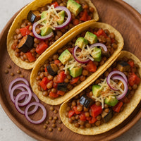 Vegetarische Tacos mit Avocado sind ein schnelles und gesundes mexikanisches Gericht voller Gemüse und Geschmack. Eine Mischung aus Auberginen, Paprika, Linsen und Tomatenwürfeln wird mit Kreuzkümmel und Paprikapulver gewürzt und in warmen Tacos serviert. Die Tacos werden mit Avocadowürfeln und geriebenem Käse belegt und ergeben eine köstliche, fleischfreie Mahlzeit.