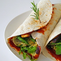 Vegetarische Wraps mit Auberginen- und Tomatensauce