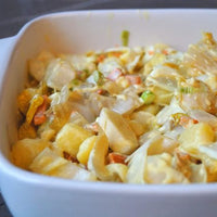 Das Slow-Cooker-Chicoree-Gericht ist ein gesundes, vegetarisches Hauptgericht für vier Personen. Es kombiniert Chicorée, Kartoffeln, vegetarischen Speck, Frühlingszwiebeln, Crème fraîche, Senf und geriebenen Käse. Nach vier Stunden langsamem Garen entsteht ein köstlich cremiges Gericht mit einer frischen Note Frühlingszwiebeln und einem herzhaften Käsebelag.