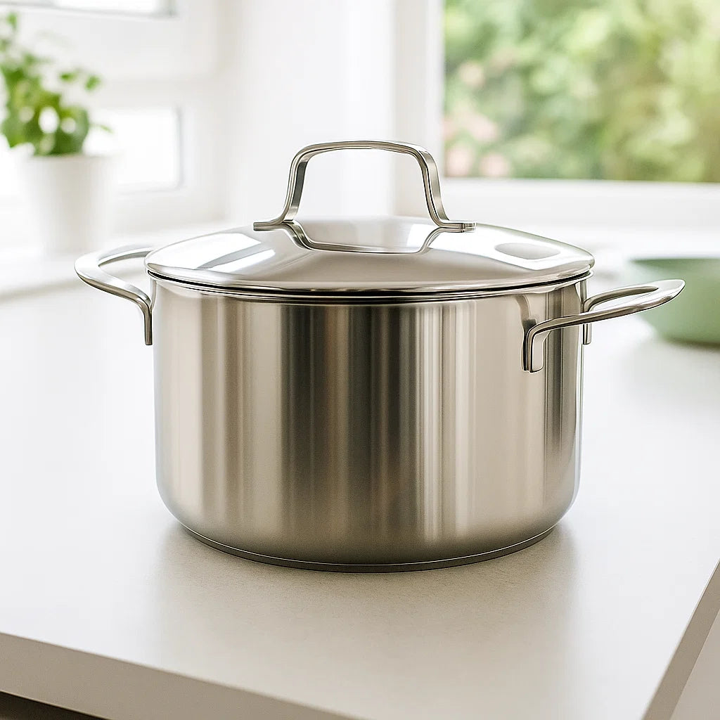 - Verkapselter / Sandwichboden (3-lagig) – gleichmäßige Wärmeverteilung, verhindert Anbrennen.