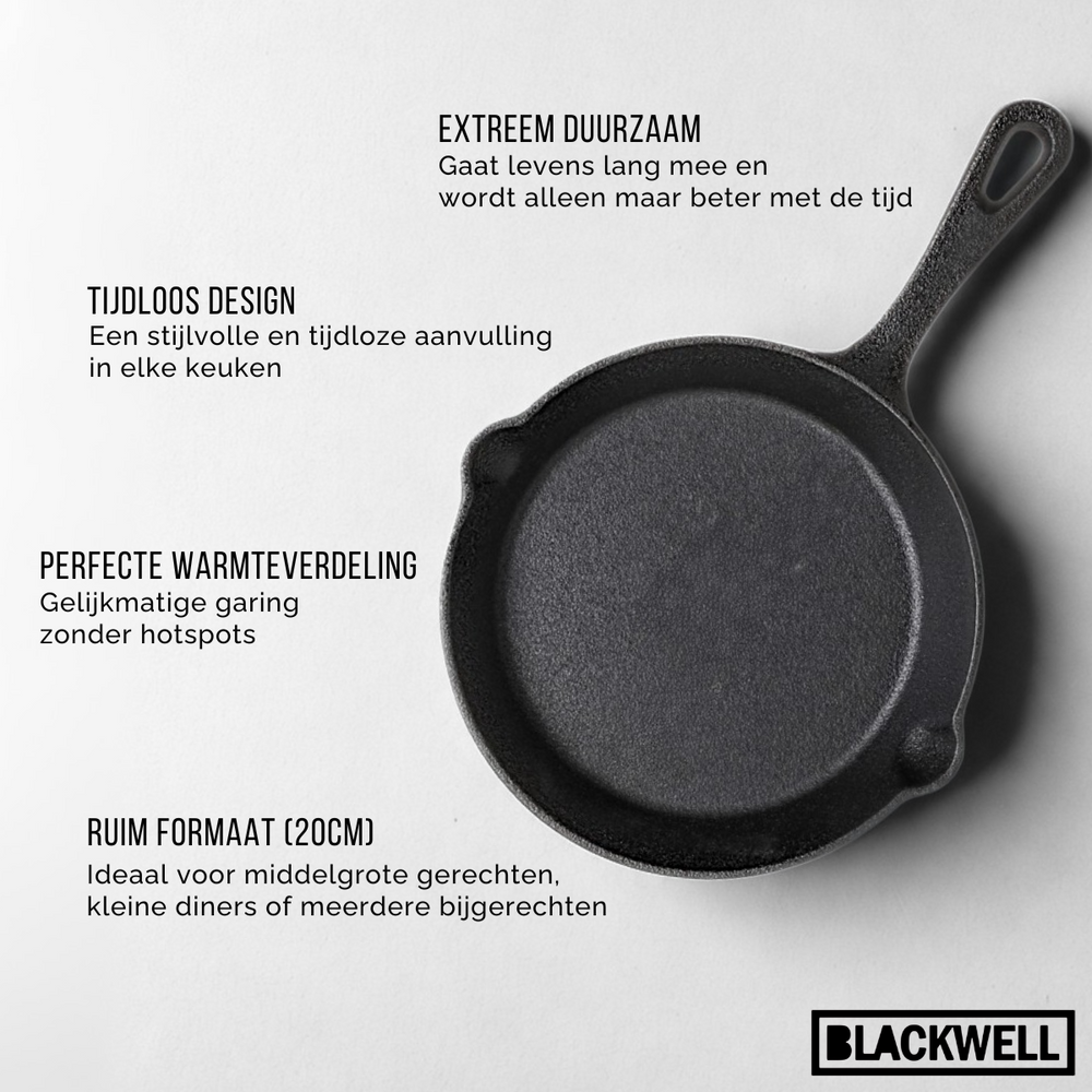 Blackwell Bratpfanne - Skillet - Gusseisen - Ø 20 cm - Ohne Antihaftbeschichtung