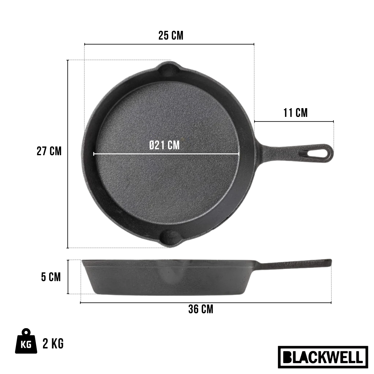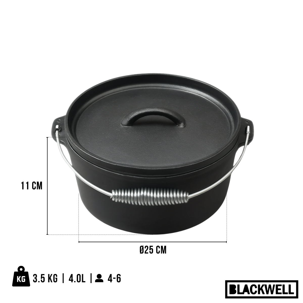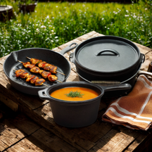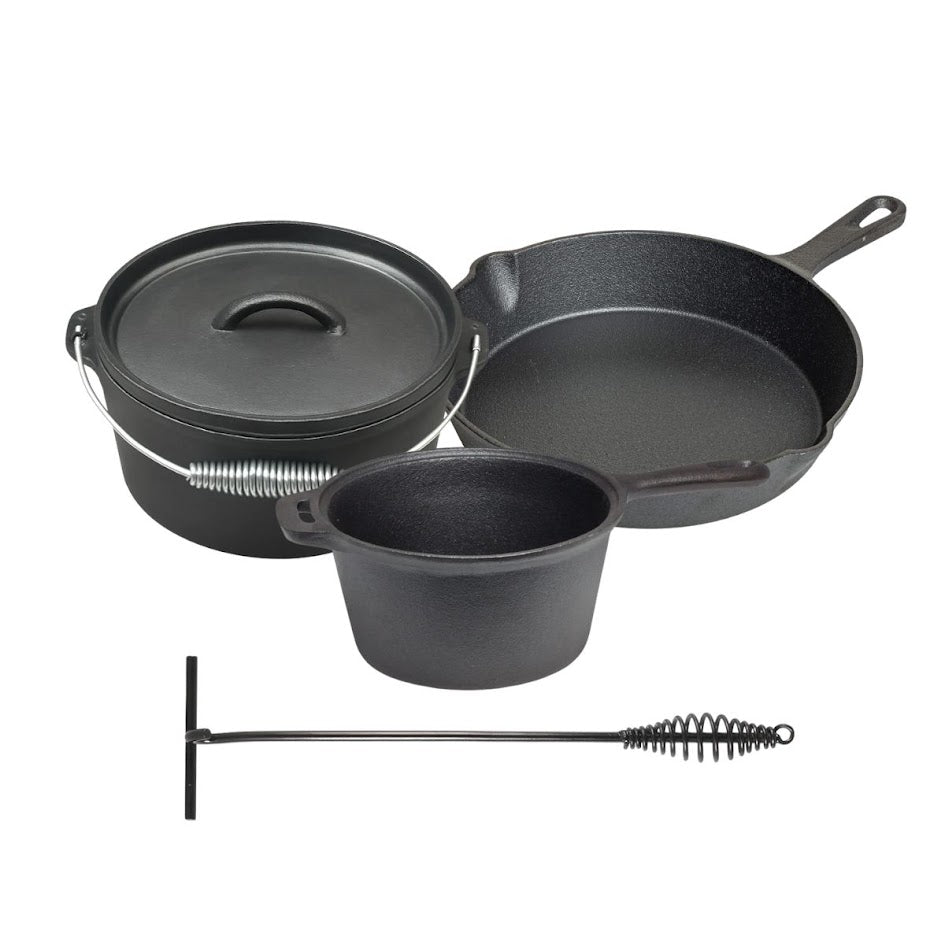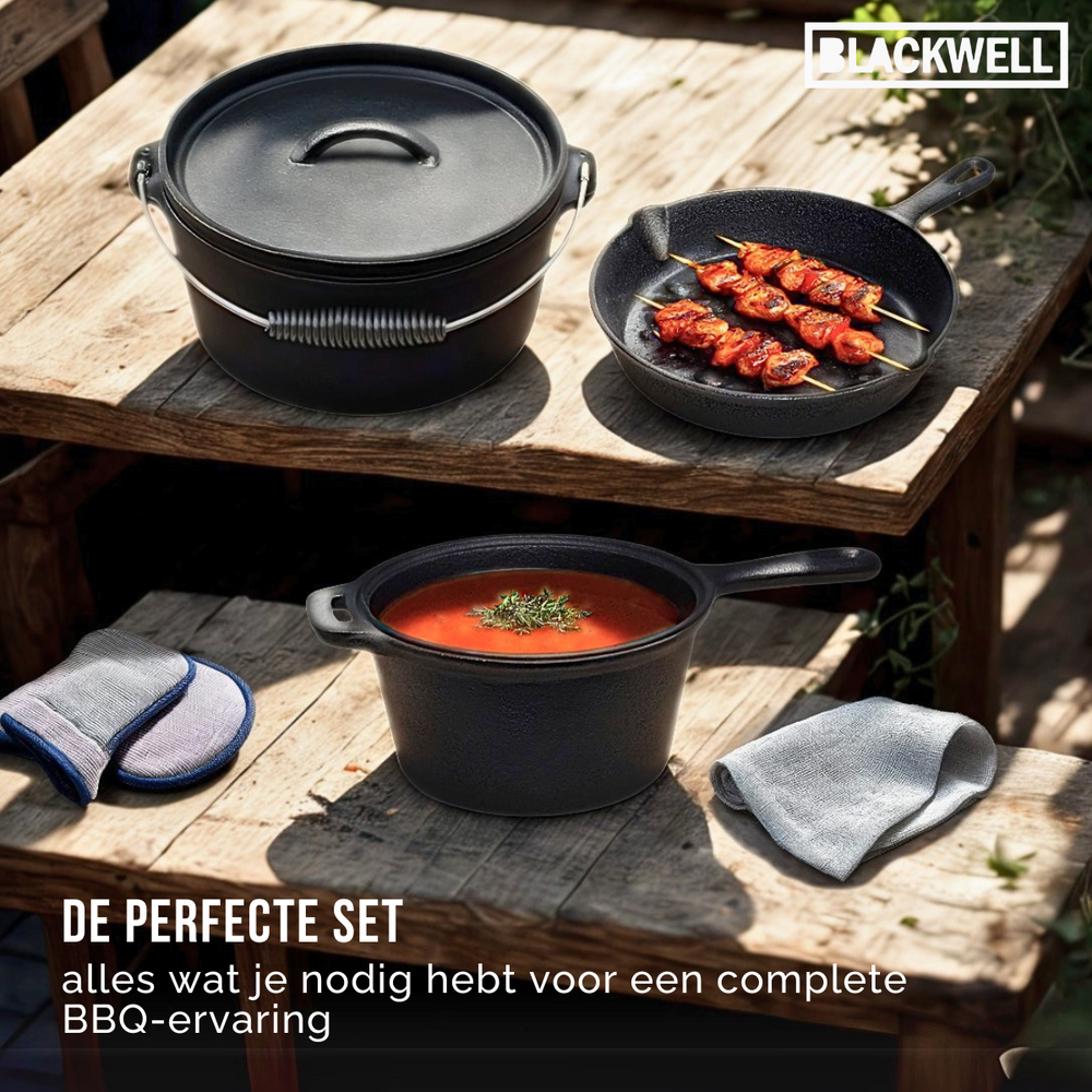 Blackwell Dutch Oven BBQ Set Gusseisen – Bratreine, Stielkasserolle, Bratpfanne & Deckelheber