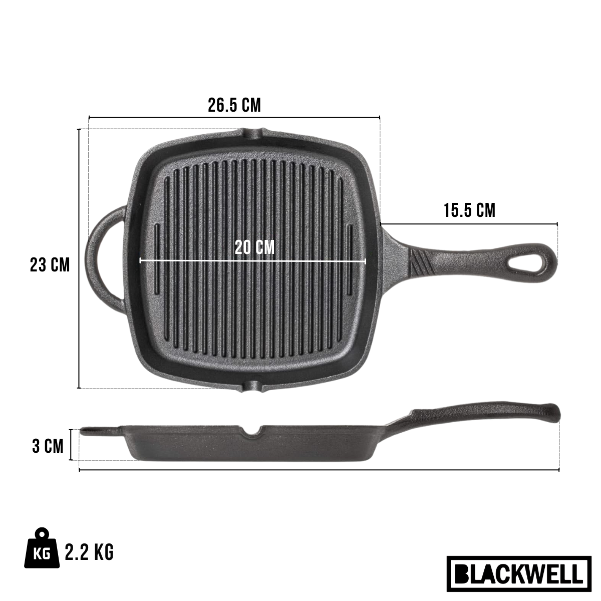 Blackwell Grillpfanne - Gusseisen - 23 x 23 cm - Ohne Antihaftbeschichtung
