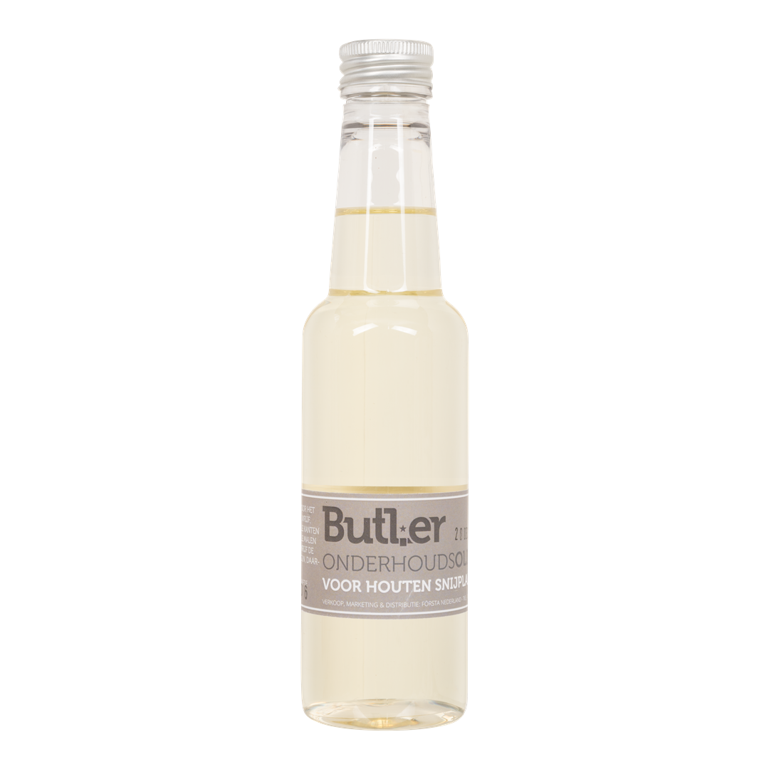 Dieses essentielle Öl von Butler ist absolut notwendig für die gute Pflege eines Holzschneidebretts. Es ist ratsam, ein Holzschneidebrett vor der Benutzung gut mit diesem Öl einzureiben und es auch regelmäßig danach zu ölen. So verringern Sie die Wahrscheinlichkeit von Rissen und verlängern die Lebensdauer.