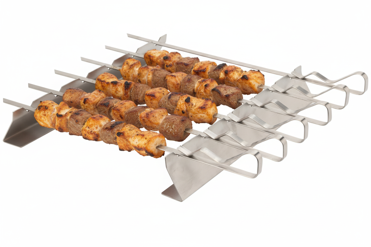 - Stabilität garantiert – Der Halter verhindert, dass Ihre Spieße während des Grillens verrutschen. So bleiben Ihre Leckereien immer sicher und stabil, selbst über einem heißen Feuer.