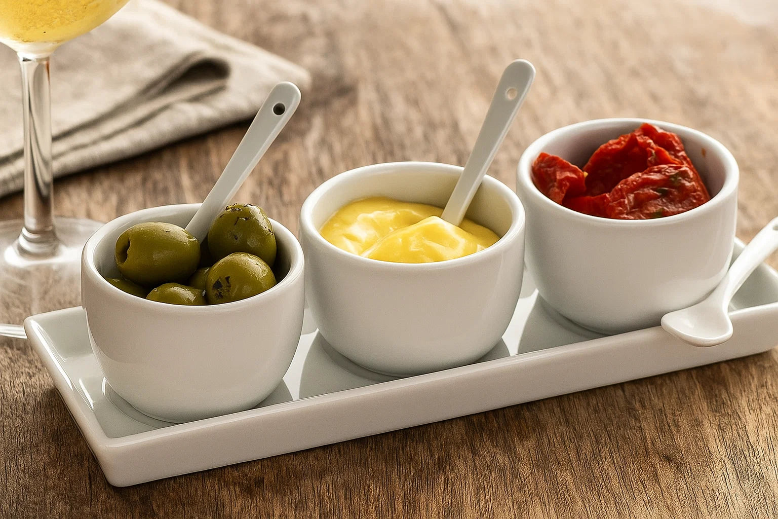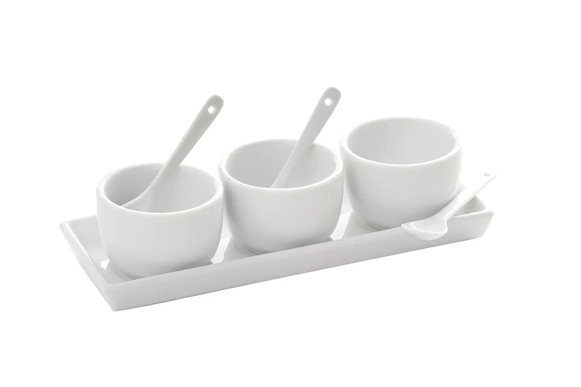Vervollständigen Sie Ihren Tisch mit diesem stilvollen 7-teiligen Set von Dipschalen aus Porzellan. Perfekt für Saucen, Dips, Oliven oder kleine Geschmacksgeber, die Ihre Gerichte ergänzen. Das feine Porzellan sorgt für eine elegante Ausstrahlung und lässt jede Zutat wunderbar zur Geltung kommen.