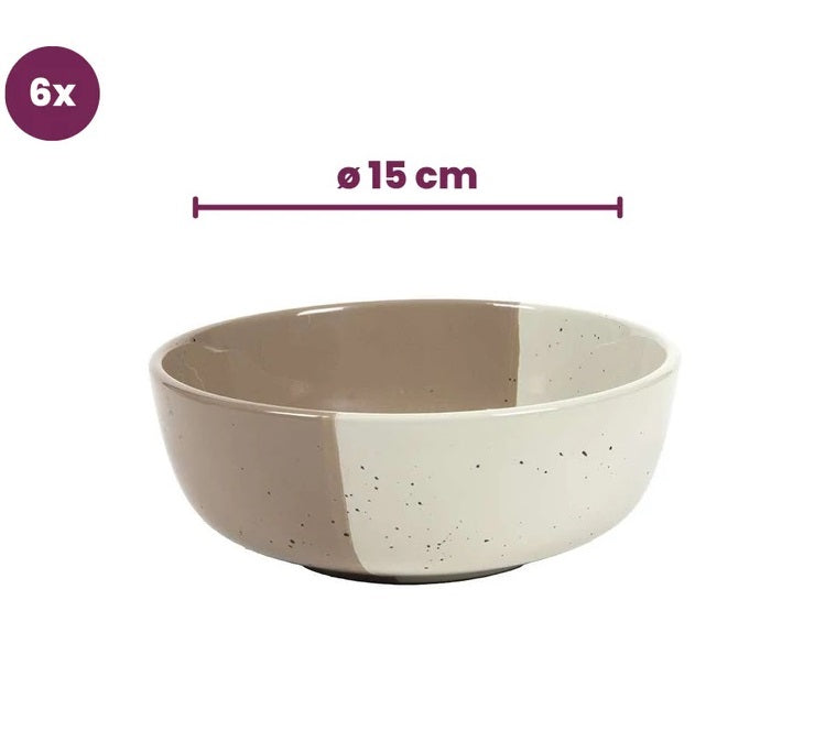 - Inklusive: 6 × Dinner-Teller (ø 26 cm), 6 × Frühstücks-Teller (ø 21 cm), 6 × Schalen (ø 15 cm)