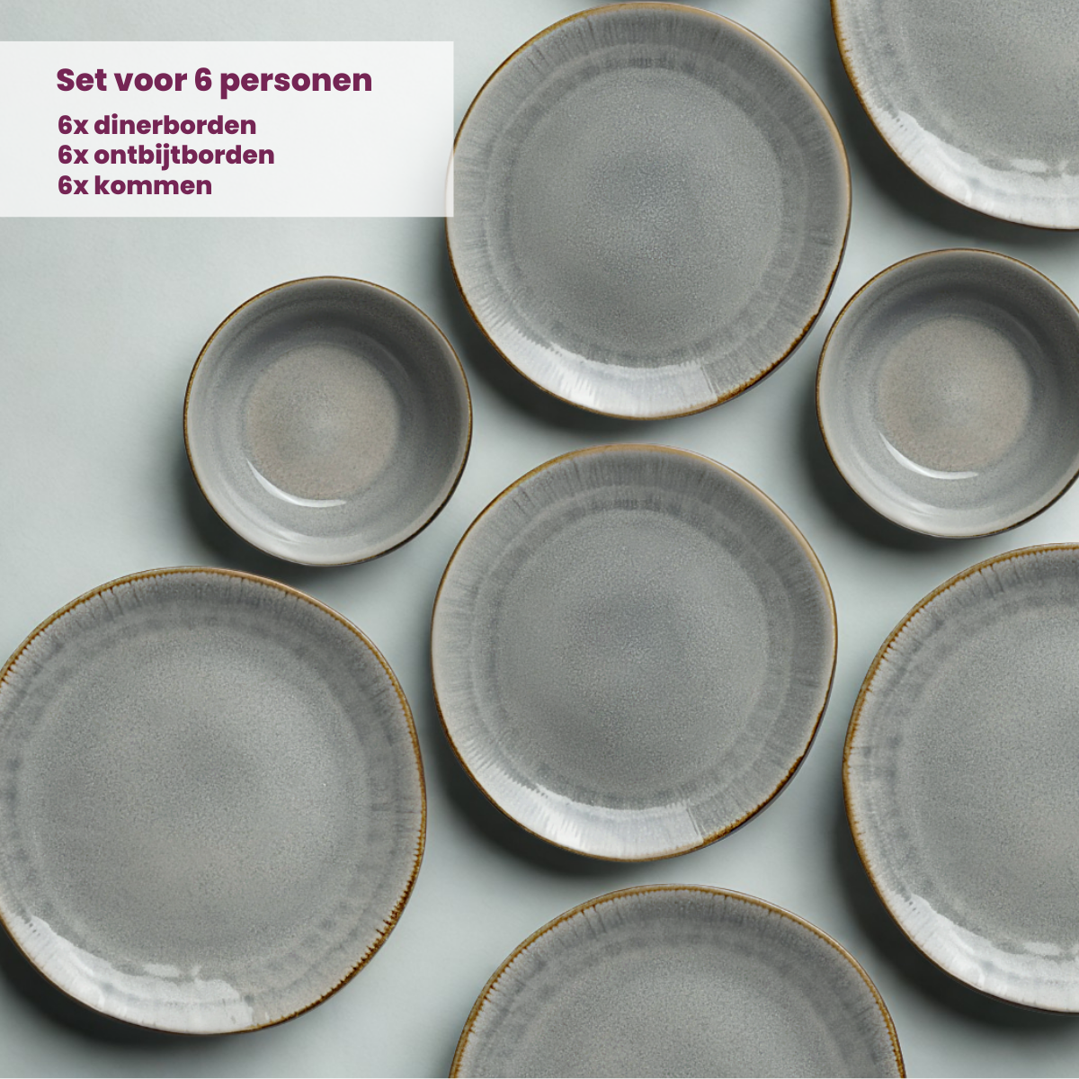 Cookinglife Geschirrset Nola Warm Grey - 18-teilig / 6 Personen - 6 Speiseteller, 6 Frühstücksteller und 6 Schalen