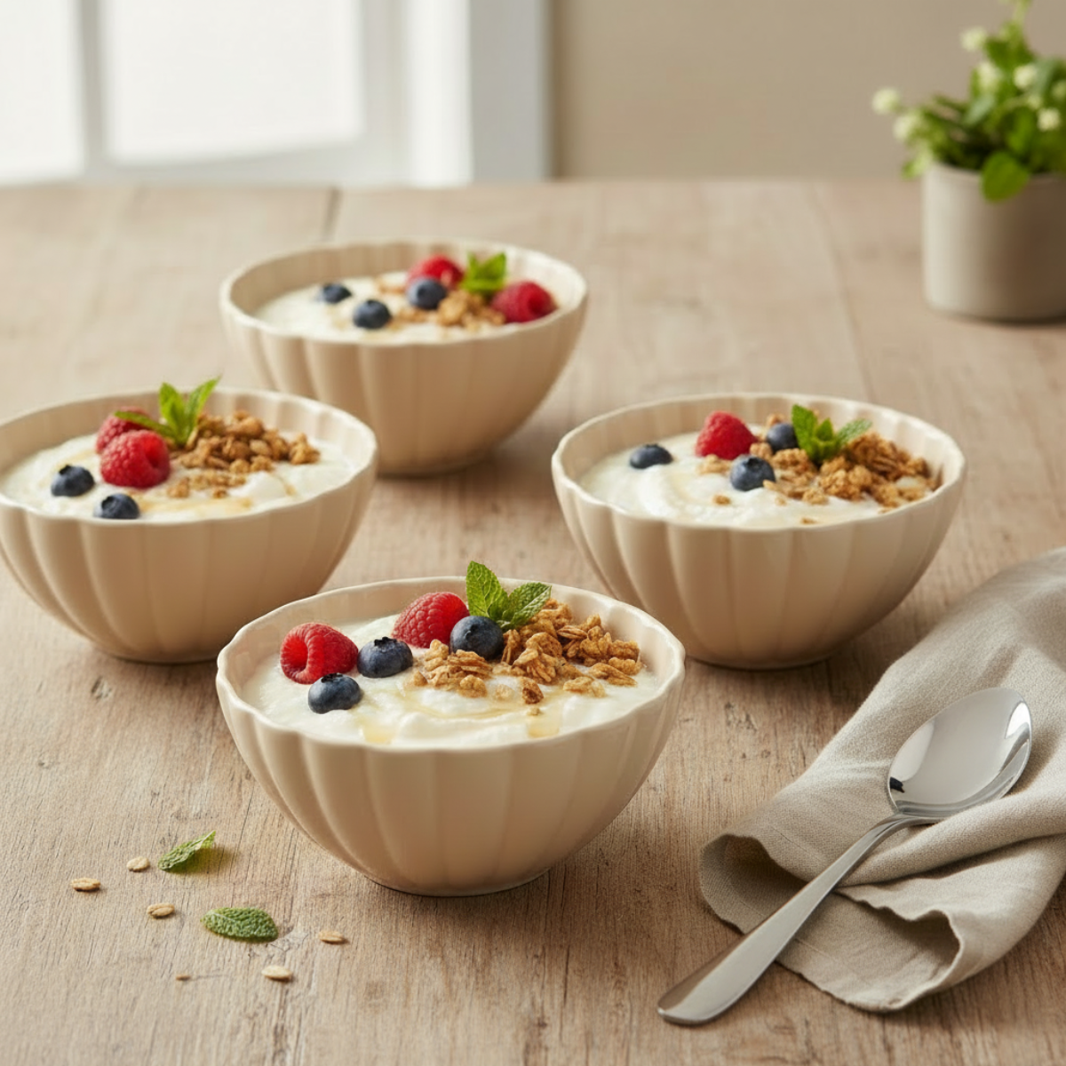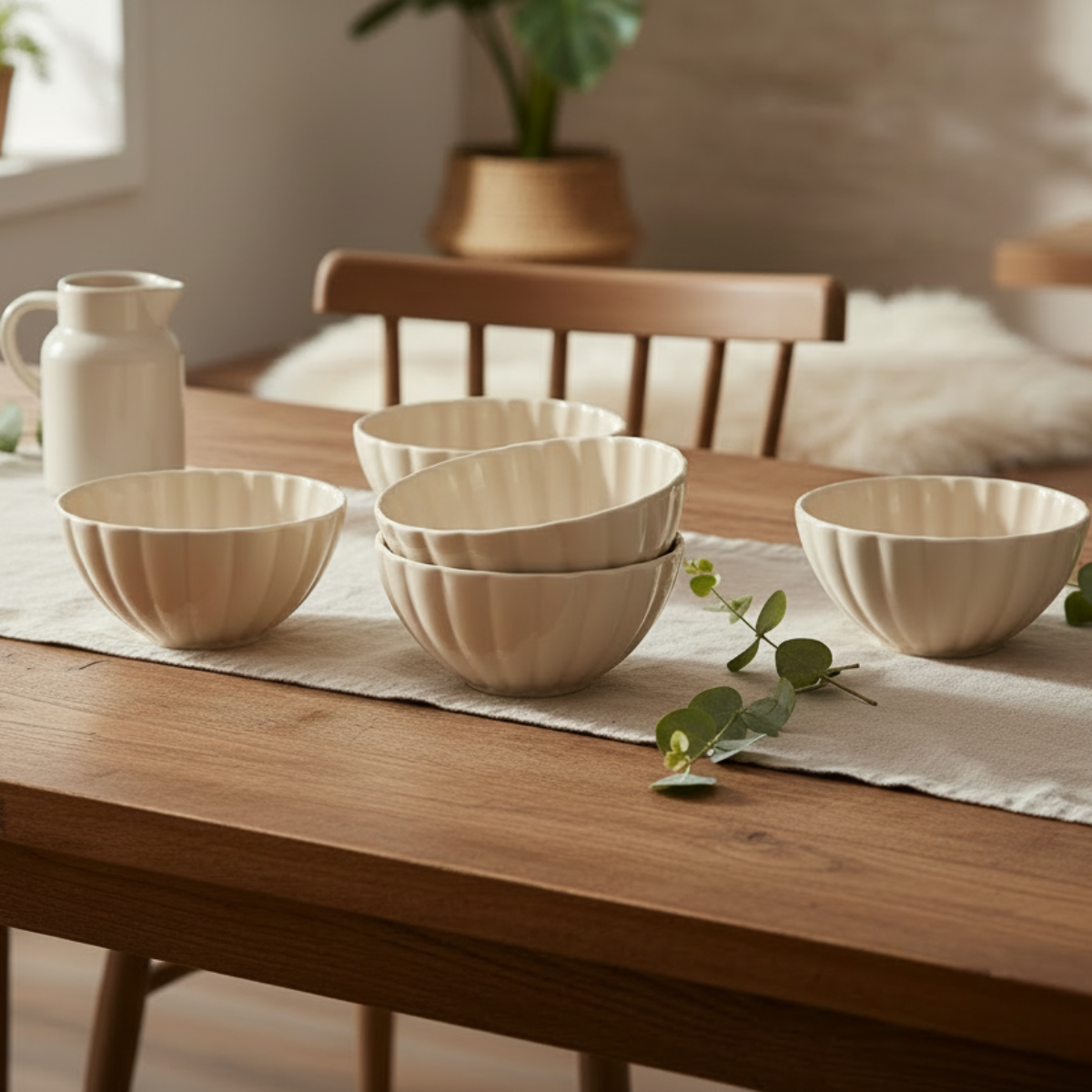 Steingut hat etwas, das Porzellan oder Kunststoff niemals ganz erreichen können: eine Wärme und Authentizität, die man sofort spürt. Die Cardida Schüsseln sind aus hochwertigem Steingut gefertigt, das dem täglichen Gebrauch standhält. Die glatte Glasur, die Farbe ehrliches Beige – kein Schnickschnack, einfach gute Handwerkskunst. Und das merken Sie nicht nur, wenn Sie sie auf den Tisch stellen, sondern auch, wenn Sie sie in der Hand halten: solide, angenehm in der Hand, und mit genügend Gewicht, um zu spüren, dass Sie etwas Wertiges in den Händen halten.