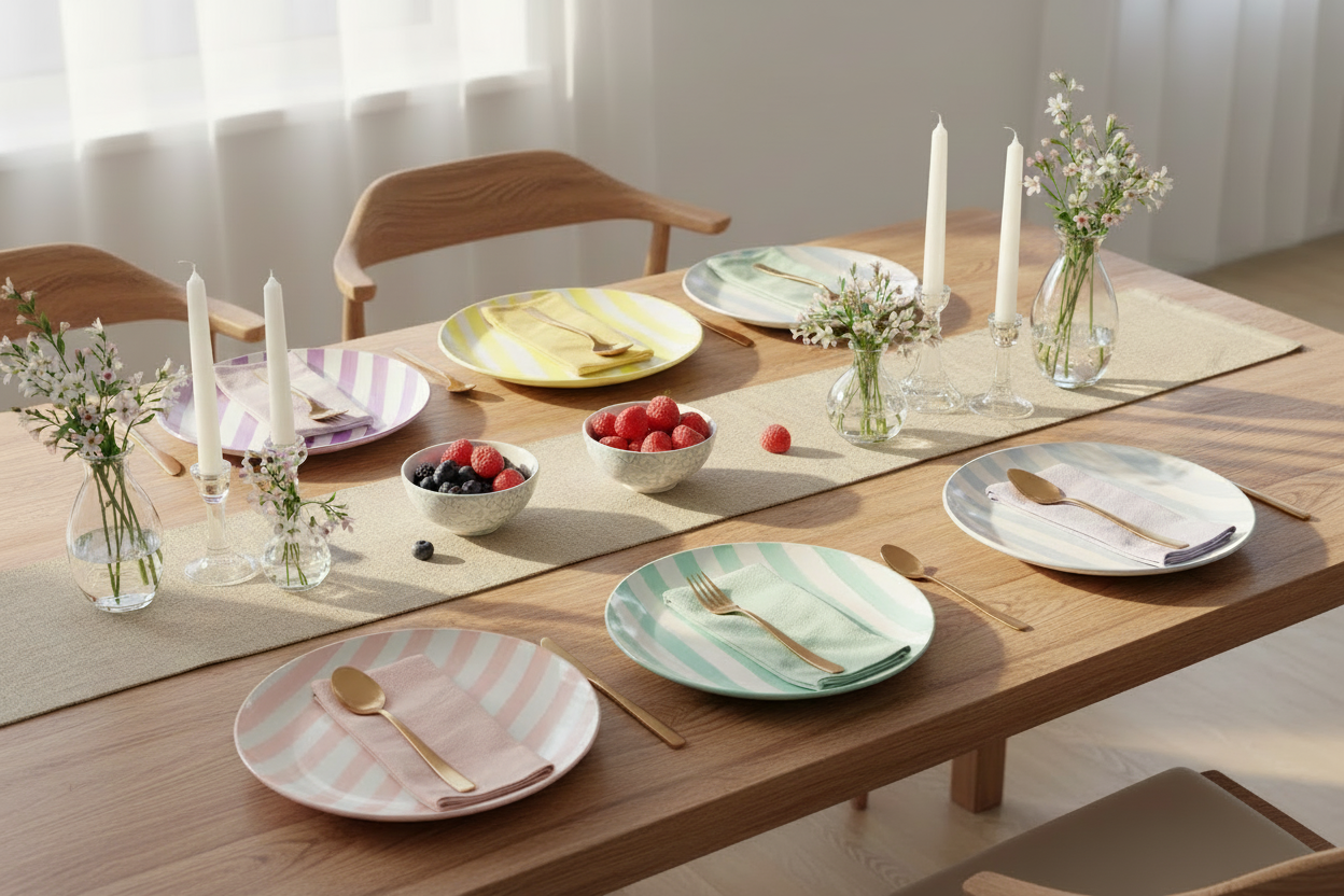 Frische Pastellfarben mit Streifenmuster – verleiht deiner Tischdekoration einen einzigartigen, fröhlichen und eleganten Look