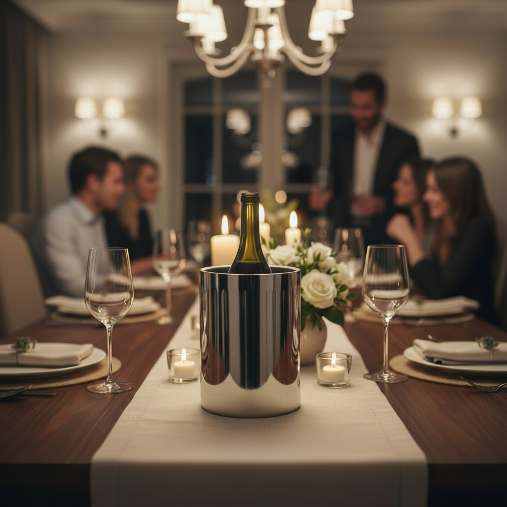 Mit dem Cookinglife Weinkühler in Chromfarbe hältst du deinen Wein oder Champagner auf angenehmer Temperatur. Das metallische Design sorgt für eine moderne Ausstrahlung und durch die praktische Form steht er stabil auf dem Tisch oder einem Weinregal. Ideal für einen entspannten Abend mit Freunden oder ein Dinner.