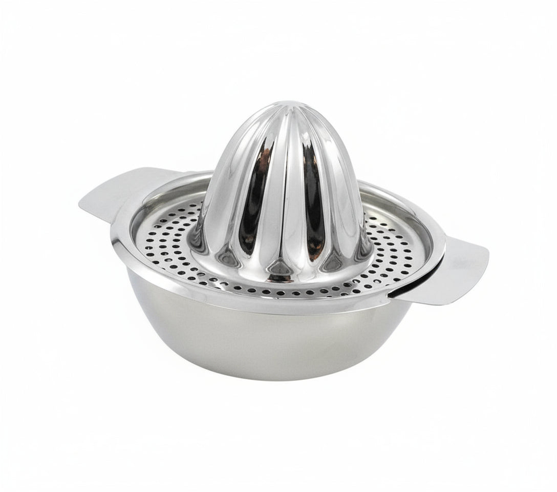 Pressen Sie einfach Ihre Zitrusfrüchte mit dieser klassischen Hand-Zitruspresse aus rostfreiem Stahl. Die robuste RVS-Konstruktion garantiert Langlebigkeit, während die kompakte Größe ideal für tägliche Säfte, Getränke oder Dressings ist. Mit diesem Modell verarbeiten Sie schnell und effektiv Zitrone, Limette oder kleine Orangen, ohne Aufwand.