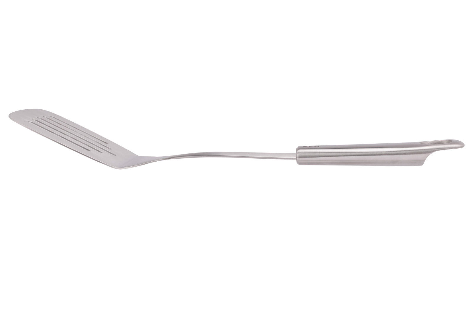 - Robuste Edelstahlkelle mit Perforationen – ideal zum Servieren von gebratenen Gerichten ohne Fett