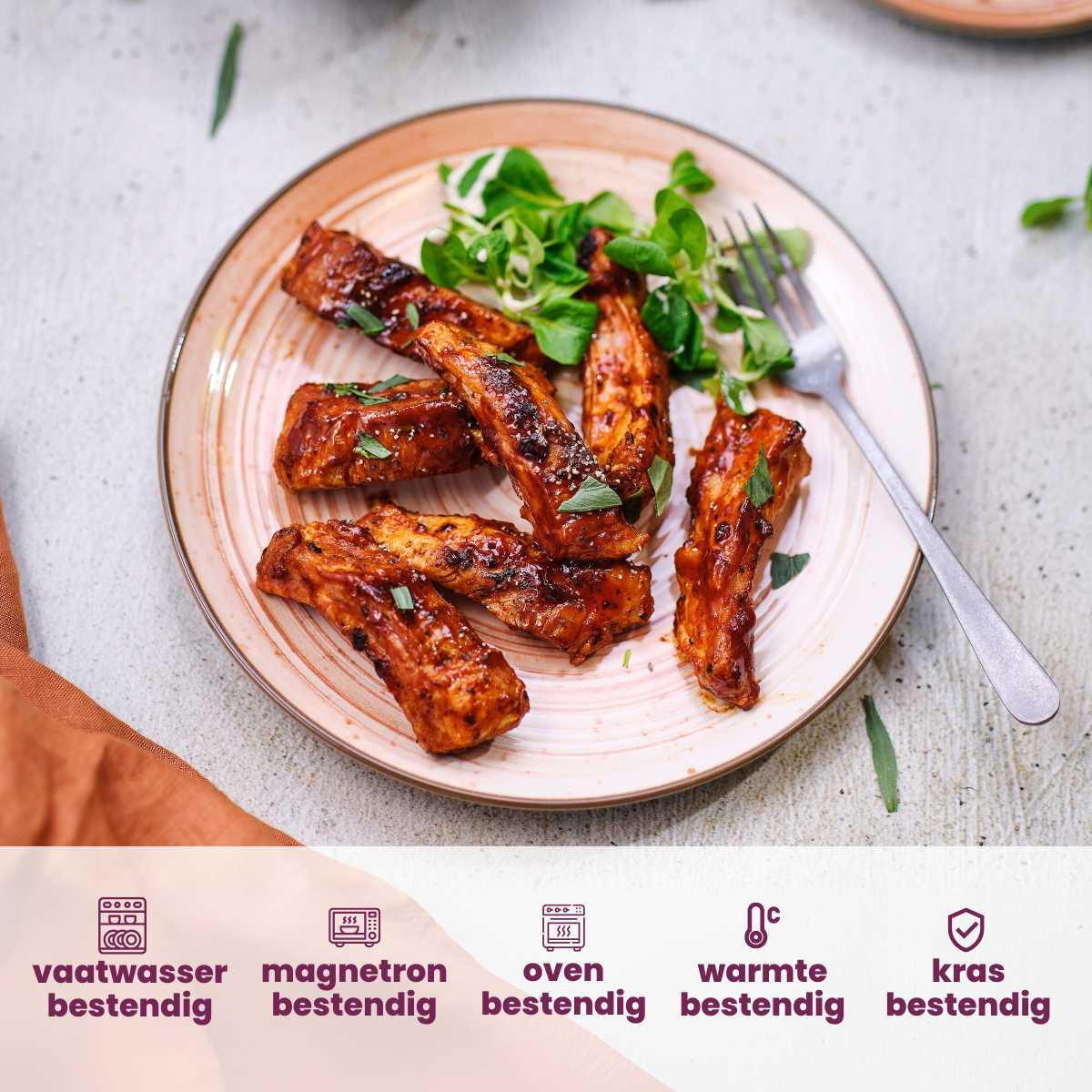 Spüle den Teller nach Gebrauch ab, um Flecken zu vermeiden