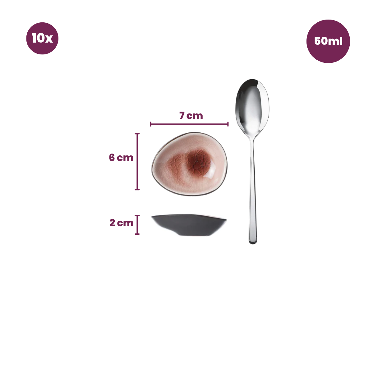 Die Cosy & Trendy Small Streetfood Bowls/Dip Bowls messen 7 x 6 cm und fassen 50 ml. Damit eignen sie sich ideal zum Servieren von Dips, Saucen oder kleinen Snacks. Die Schalen sind aus hochwertiger Keramik gefertigt und garantieren so Robustheit und Langlebigkeit. Dank ihrer kompakten Größe eignen sie sich perfekt für Tapas, kleine Snacks oder als Beilage zu einer Mahlzeit. Dank ihres modernen Designs eignen sich die Schalen sowohl für den Alltag als auch für besondere Anlässe.