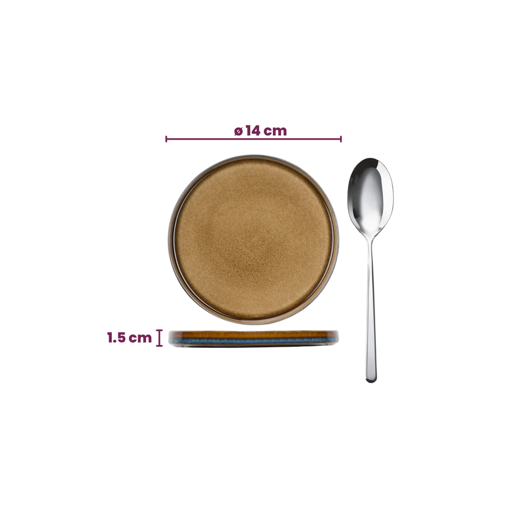 Die Cosy & Trendy Quintana Kuchenteller mit einem Durchmesser von 14 cm haben eine wunderschöne braune Farbe, die mit einem Verlauf von Bernstein- und Blautönen kombiniert wird. Die Cosy & Trendy Quintana Kuchenteller sind aus Porzellan gefertigt, was sie besonders robust macht. Durch das robuste Material sind sie auch für die Mikrowelle und den Ofen geeignet. Nach dem Gebrauch können die Cosy & Trendy Quintana Kuchenteller einfach in die Spülmaschine gegeben werden.