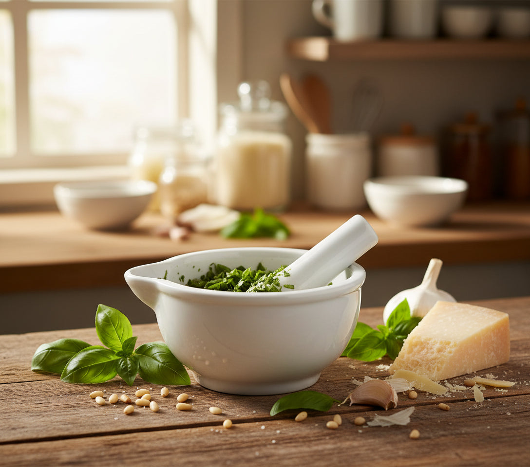 Dieser Porzellanmörser ist ideal zum Mahlen kleiner Mengen Kräuter und Gewürze. Durch das Mahlen mit einem Mörser entsteht ein noch feineres und kräftigeres Aroma, wodurch die Gerichte noch besser schmecken. Dieser Steinmörtel ist 120 x 60 Millimeter groß und muss bei der Verwendung auf einer stabilen Unterlage platziert werden, damit ausreichend Kraft aufgebracht werden kann. Dieser Mörser/Mörser wird mit Stößel geliefert. Kurz gesagt, ein Muss für jede Küche!