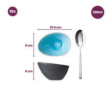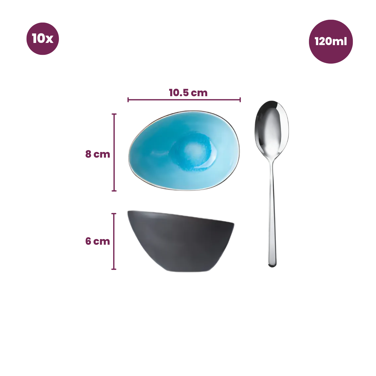 Die Cosy & Trendy Small Streetfood Bowls messen 11 x 8 cm und fassen 120 ml. Damit eignen sie sich perfekt zum Servieren von Dips, Saucen, kleinen Snacks oder Tapas. Die Schalen sind aus hochwertiger Keramik gefertigt und garantieren so Robustheit und Langlebigkeit. Ihr modernes Design macht sie ideal für den Alltag und besondere Anlässe. Dank des 10-teiligen Sets können Sie mehrere Gerichte gleichzeitig servieren oder die Schalen für größere Zusammenkünfte verwenden.