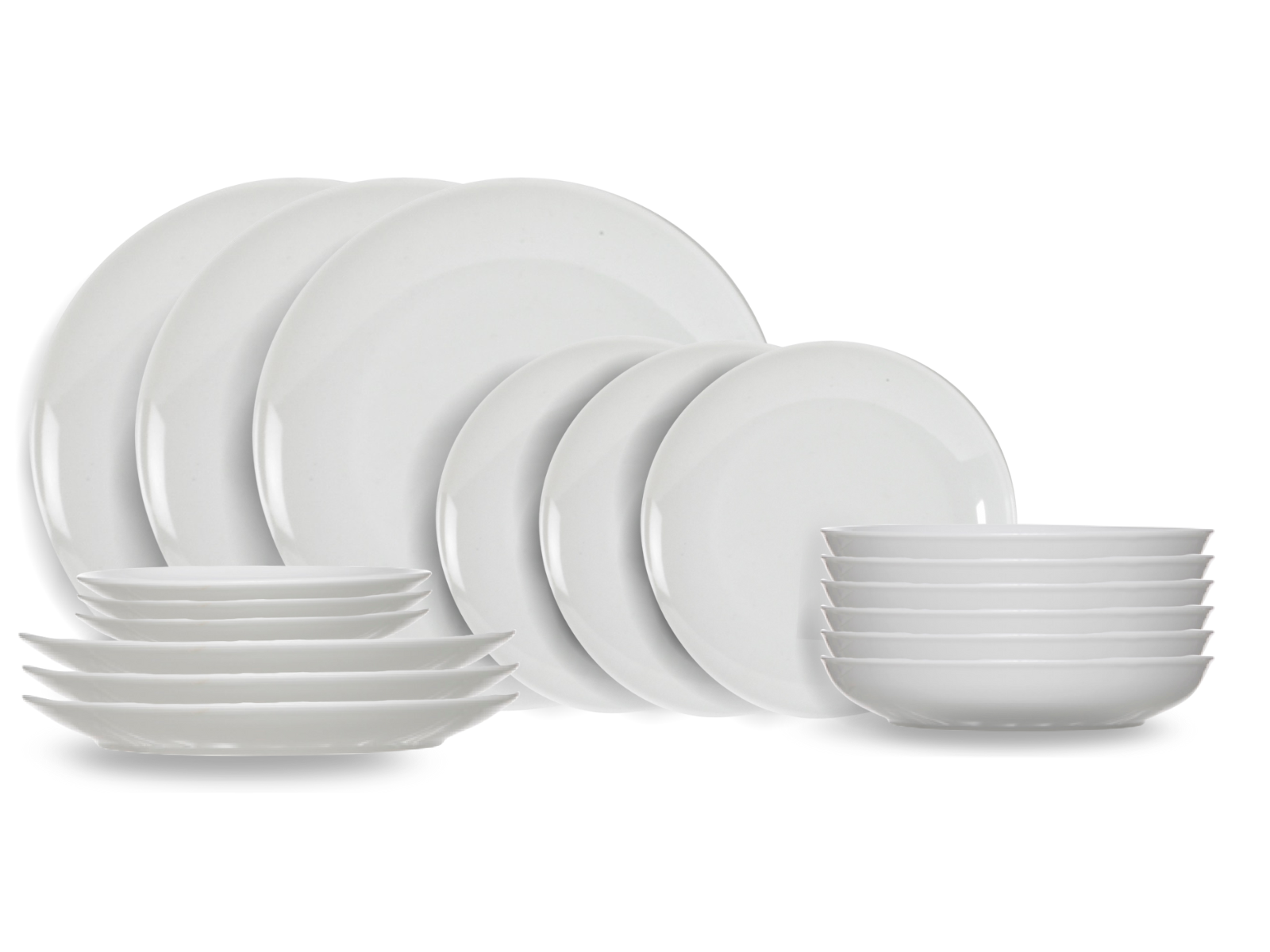| Lieferumfang | 18-teiliges Geschirrset, 6 Speiseteller, 6 tiefe Teller, 6 Frühstücksteller |