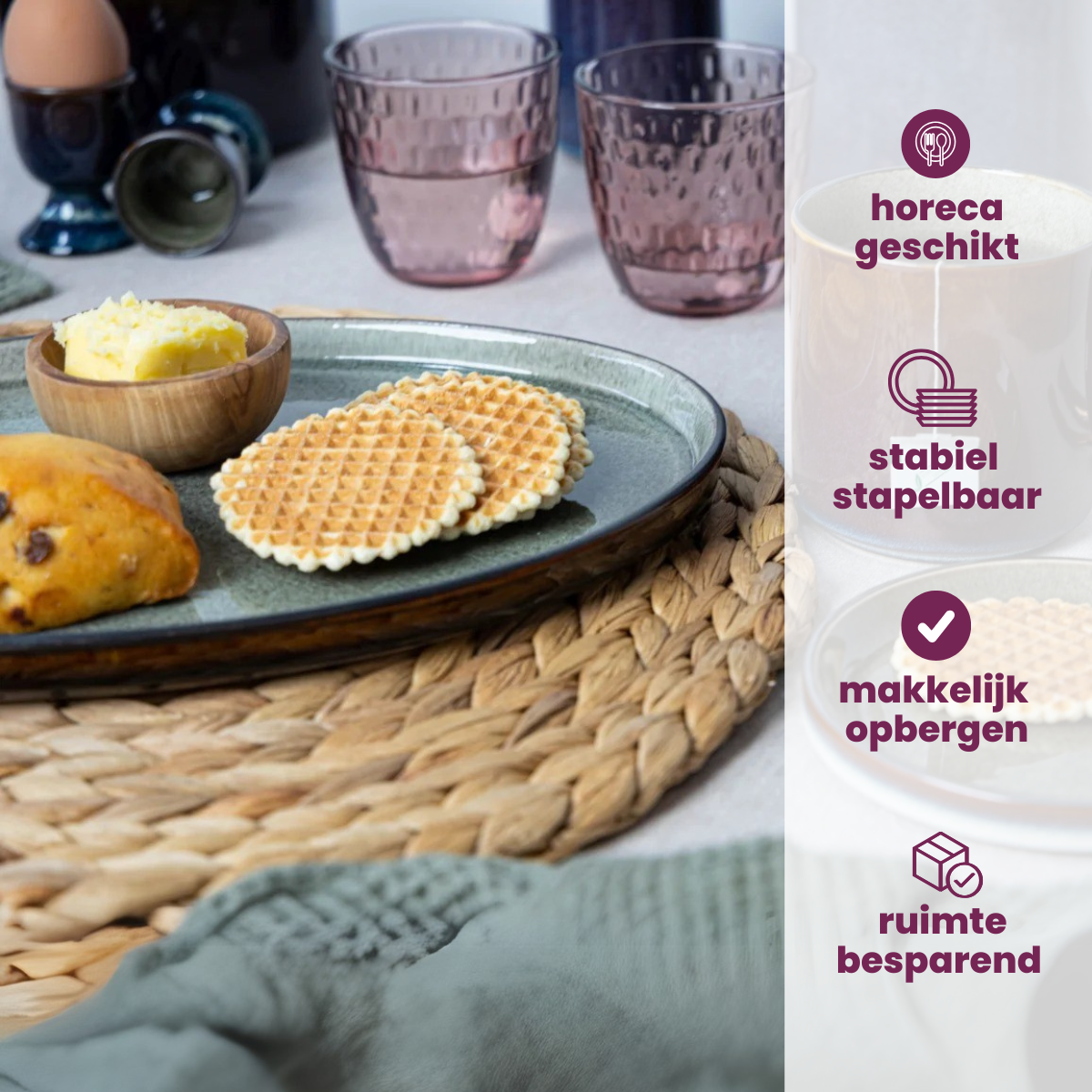 Diese Cosy & Trendy Quintana Speiseteller mit einem Durchmesser von 28 cm haben eine wunderschöne grüne Farbe, die mit einem Verlauf von bernsteinfarbenen Tönen kombiniert wird. Der Teller besteht aus Porzellan, was ihn besonders robust macht. Durch das robuste Material ist er auch für die Mikrowelle und den Ofen geeignet. Nach dem Gebrauch kann die gesamte Kollektion von Cosy & Trendy Quintana in die Spülmaschine.