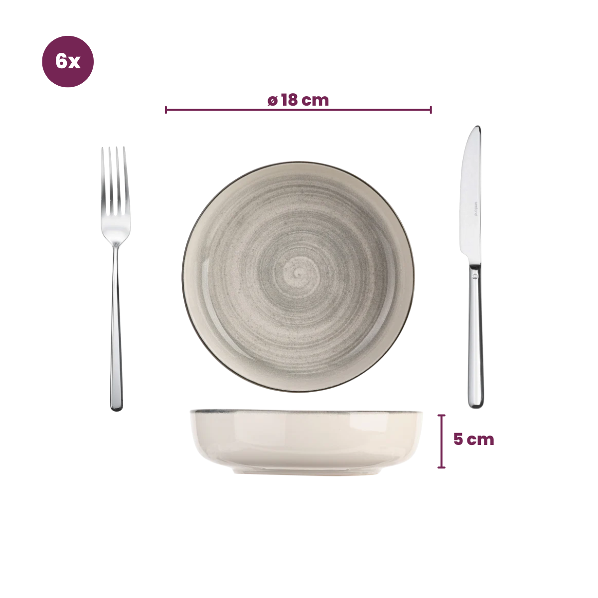 Servieren Sie Ihren Gästen ein köstliches Abendessen mit diesen stilvollen tiefen Tellern aus der Cosy & Trendy Baltic Kollektion! Die Teller sind aus Keramik gefertigt und jeder Teller hat dadurch ein einzigartiges Muster. Die Teller haben eine graue Farbe und einen Durchmesser von 18 Zentimetern. Neben der Mikrowellenbeständigkeit können sie nach dem Gebrauch auch einfach in die Spülmaschine!