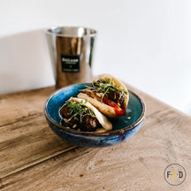 Durch die reaktive Glasurtechnik können Farbe und Muster pro Schale variieren; dies ist ein Merkmal der Nova-Linie und macht jedes Stück einzigartig.