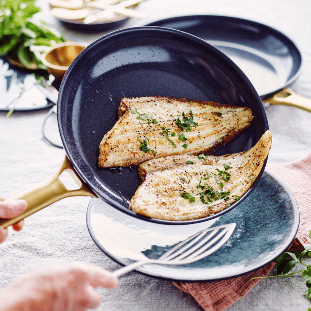 💡 Tipp: Für die beste Performance und längste Lebensdauer deiner keramischen Antihaftbeschichtung reicht beim Braten ein Hauch Öl oder Butter aus. Mittlere bis niedrige Hitze genügt fast immer - Keramik leitet Wärme so effizient, dass du nie auf volle Leistung stellen musst. So bleibt die Beschichtung lange wie neu.