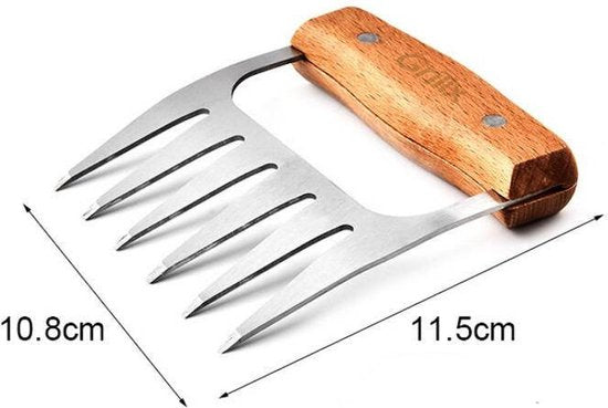 Mit diesen Fleischkrallen mit Holzgriff wird die Zubereitung von Fleisch zum wahren Vergnügen! Das Set besteht aus 2 Krallen, die aus nachhaltigem Holz und rostfreiem Stahl gefertigt sind. Dank der messerscharfen Zähne der Krallen zerrst du das Fleisch mühelos auseinander.