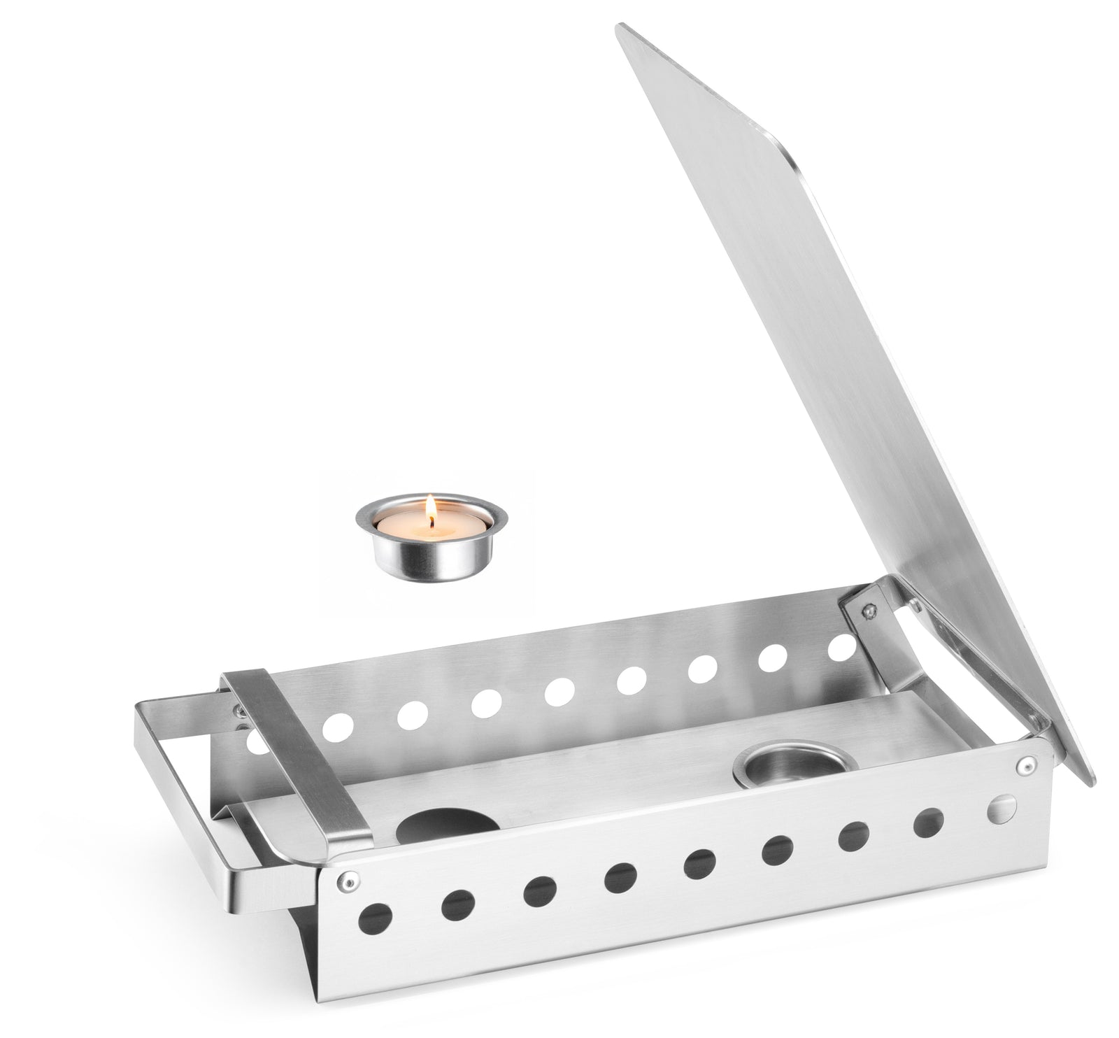 Beschreibung Hendi Tellerwärmer mit 2 Kerzenhaltern – Edelstahl – 33 x 18 x 6.5 cm