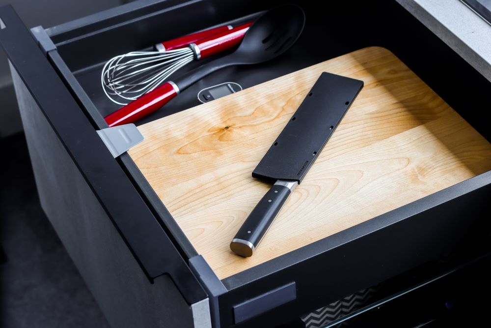 Inklusive maßgefertigter Klingenabdeckung zur sicheren Aufbewahrung