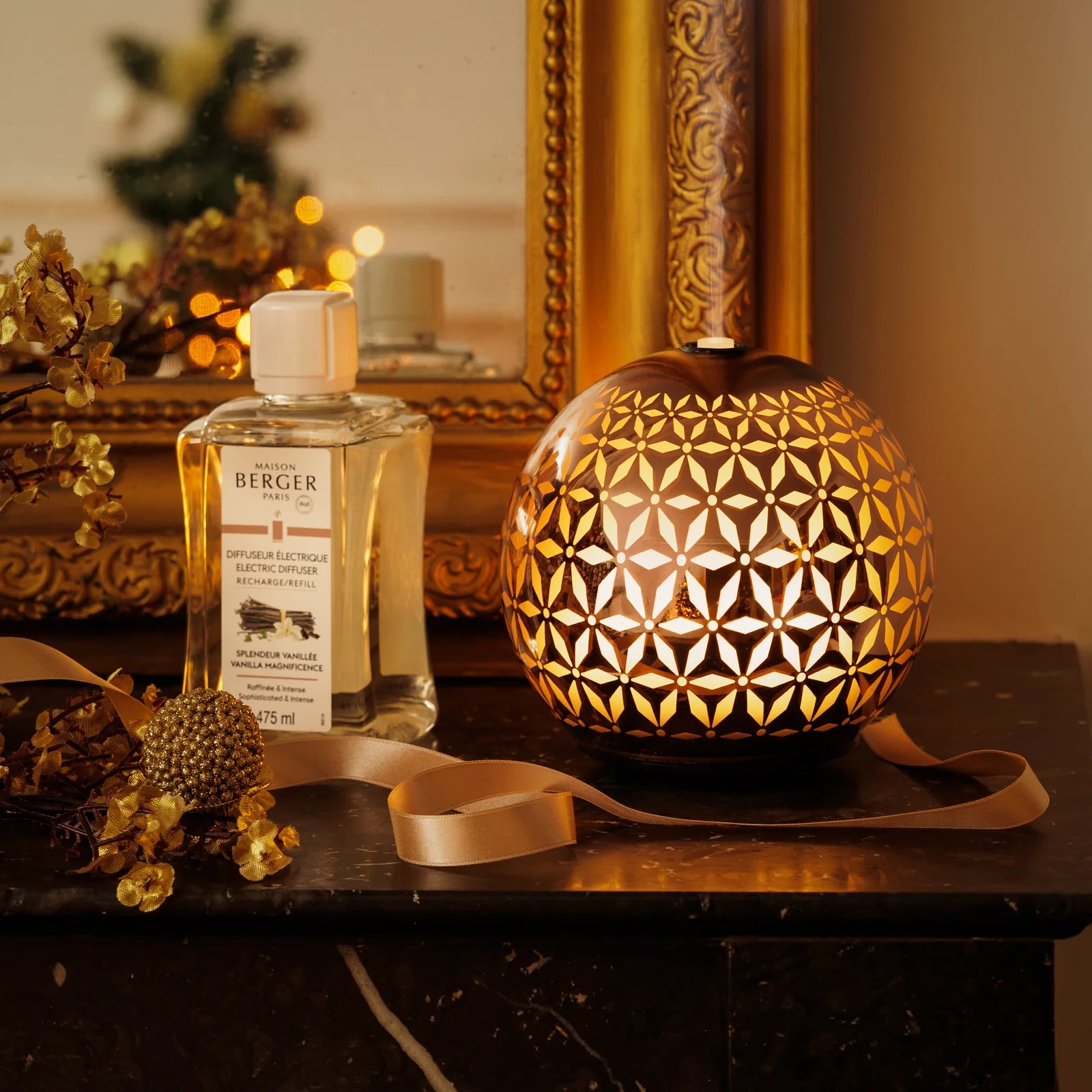 Der Maison Berger Pomelis Mist Diffuser vereint Duft, Licht und Stil in einem eleganten Objekt. Der Diffuser besticht durch sein schokoladenbraunes Design mit glänzender Innenseite, durch die das sanfte Licht wunderschön hindurchscheint. Der enthaltene Raumduft „Splendeur Vanillée“ verströmt einen reichhaltigen, warmen Duft mit frischen, würzigen und cremigen Vanillenoten. Dank der einstellbaren Duftintensität können Sie die Atmosphäre ganz einfach an Ihre Stimmung und Ihren Raum anpassen. So schaffen Sie im Handumdrehen ein behagliches und luxuriöses Ambiente in Ihrem Zuhause.