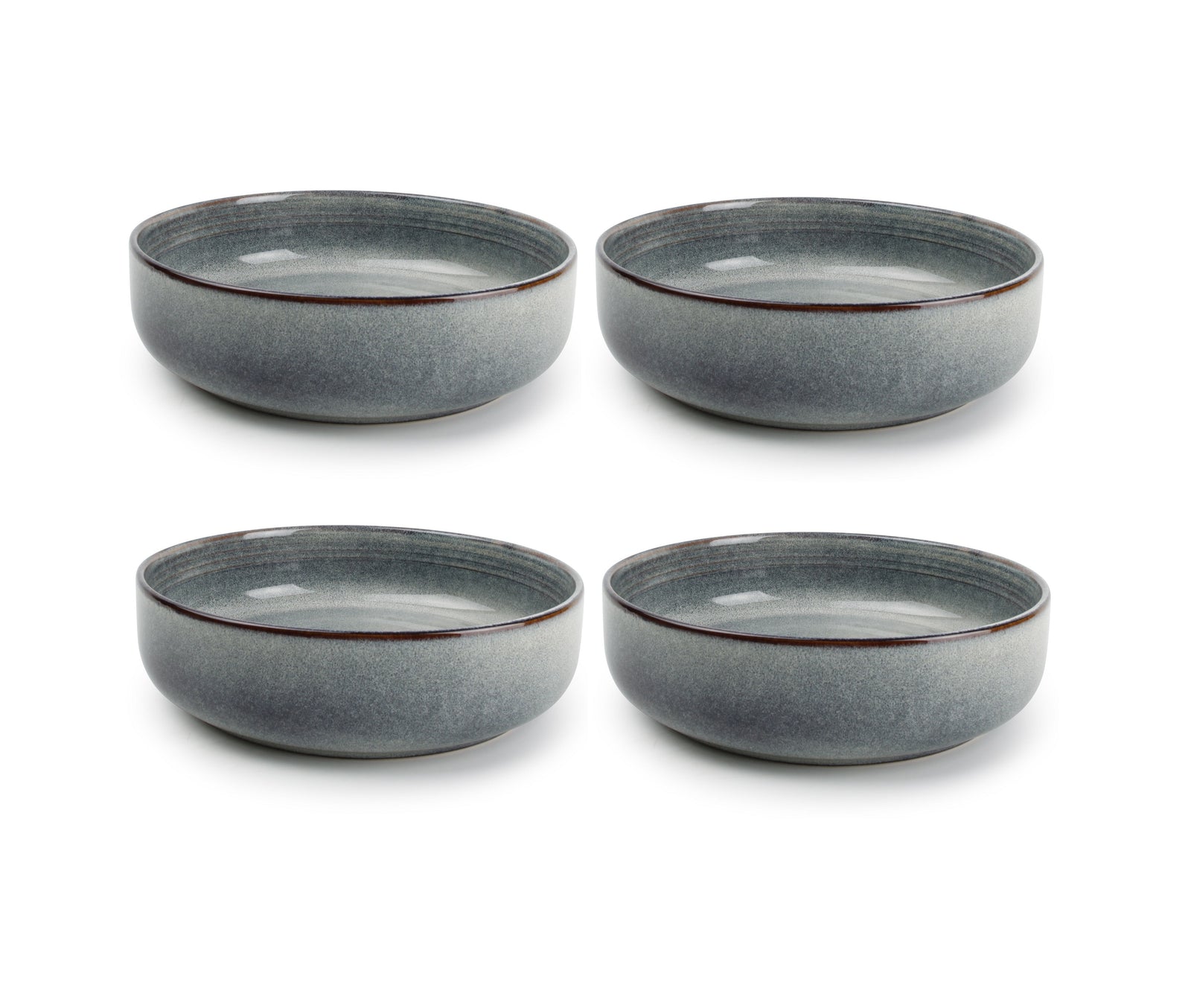 Verleihen Sie jeder Mahlzeit das Besondere mit den ONA Schalen Duna Blue. Dieses Set aus vier Schalen ist mit reaktivem Glasur in Blau- und Grautönen versehen, was ein lebendiges und einzigartiges Muster schafft. Hergestellt aus robustem Steinzeug, perfekt für Suppe, Müsli oder Salate.