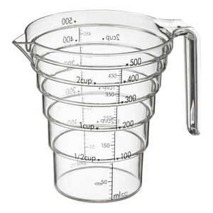 Ein Messbecher, der das Abmessen von Wasser oder Milch beim Kochen und Backen revolutioniert hat. Dafür ist der OXO Messbecher 250 ml bekannt. Das altmodische System des Füllens, Kontrollierens und Nachfüllens gehört mit der Einführung dieses revolutionären Messbechers der Vergangenheit an! Der Becher verfügt über eine praktische Graduierung am schrägen Rand der Kanne, die das Ablesen des Inhalts erleichtert. Dies ist möglich, indem man von oben in den Messbecher schaut. Der Messbecher hat ein Fassungsvermögen von 250 Millilitern und verfügt über eine Einteilung in 10 Milliliter. Darüber hinaus verfügt der Becher über einen weichen Griff, der mit einer rutschfesten Schicht versehen ist. Diese rutschfeste Schicht sorgt für einen festen und angenehmen Halt, auch bei nassen Händen. Nach Gebrauch des Messbechers kann dieser problemlos in der Spülmaschine gereinigt werden. Der OXO-Messbecher 250 ml ist ein echtes Muss für jeden, der gerne backt und kocht! Bestellen Sie noch heute einfach und schnell bei Cookinglife.