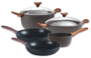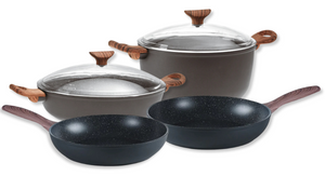 | Lieferumfang | 3x Kochgeschirr Set + Deckel, 1x Stielkasserolle, 1x Wok-Pfanne |