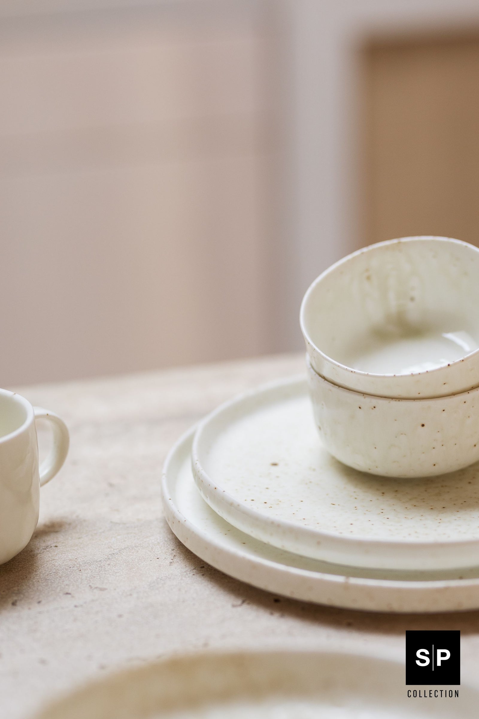 Die Salt & Pepper Geschirrset Studio Urban Beach bringt die warme Atmosphäre eines sommerlichen Strandhauses in Ihr Esszimmer. Dieses komplette Set besteht aus vier Speisetellern, vier Frühstückstellern und vier Schalen, jedes Produkt ist aus hochwertigem Porzellan mit einer handgefertigten reaktiven beigen Glasur. Die natürlichen Farbvariationen verleihen jedem Stück einen einzigartigen Charakter, während das zeitlose Design mühelos zu modernen und ländlichen Interieurs passt. Dank des langlebigen Porzellans sind alle Teile mikrowellen-, ofen- (bis 180 °C) und spülmaschinenfest. Genießen Sie stilvolles Geschirr, das sowohl funktional als auch ästhetisch ist.