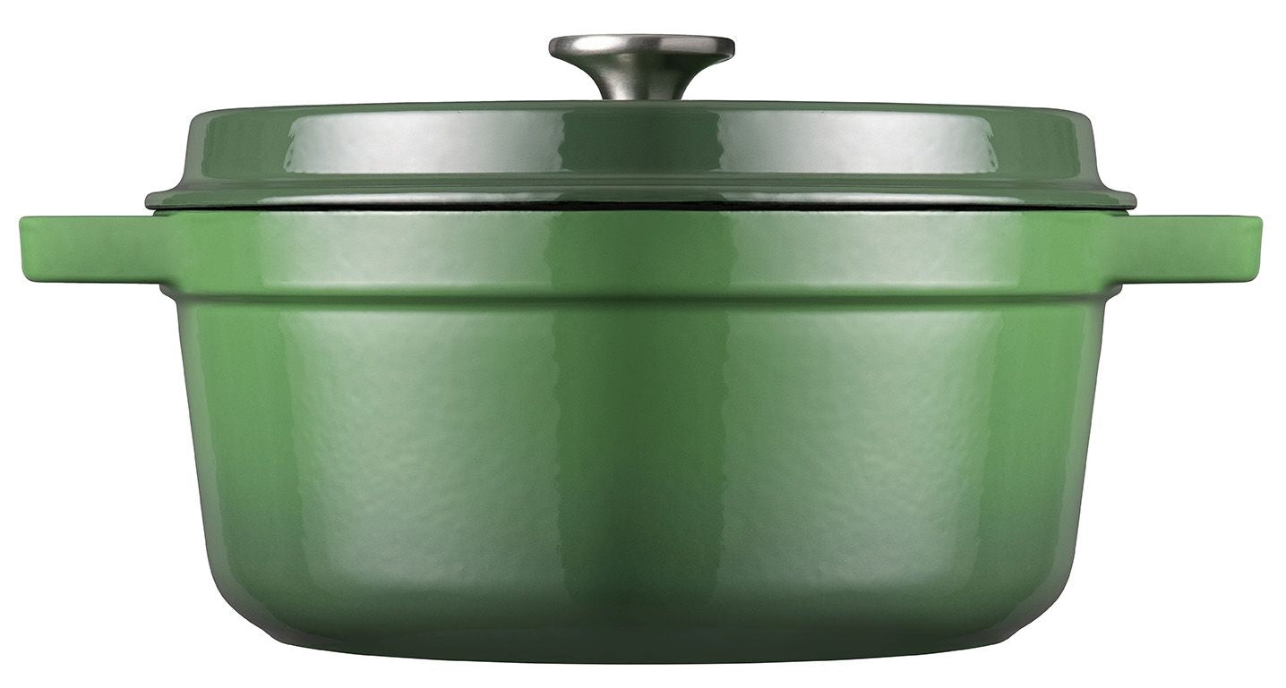 Der Sola Bräter mit Deckel in Grün ist ein echter Blickfang in der Küche und ein Spitzenreiter in der Leistung. Der Topf besteht aus hochwertigem emailliertem Gusseisen und hat ein Volumen von ca. 5 Litern. Dadurch ist er ideal für Eintöpfe, Suppen oder große Mahlzeiten. Das robuste Material sorgt für eine optimale Wärmeverteilung und -speicherung, während der Edelstahlknopf auf dem Deckel einen modernen Akzent setzt. Geeignet für alle Kochfelder, einschließlich Induktion.